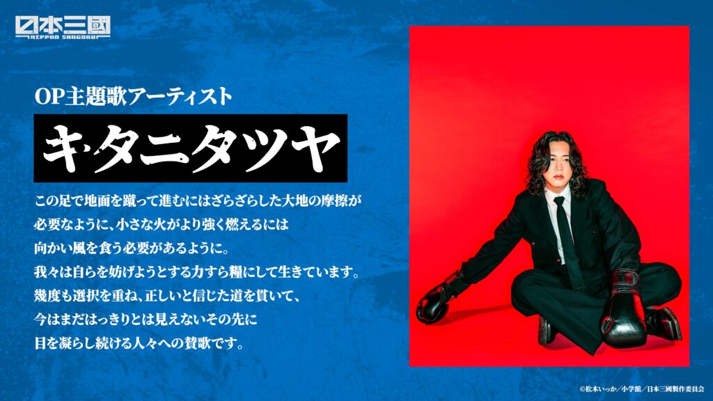 TVアニメ『日本三國』のオープニング・テーマは、キタニタツヤ「火種(ひだね)」に決定いたしました。さらに主題歌を使用した第2弾予告が解禁!